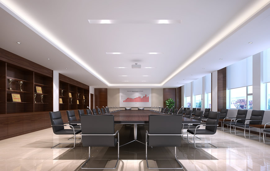 2、頂面安裝格柵燈,筒燈及局部安裝下吊藝燈具,兩層造型頂安裝暗藏T5燈光帶;